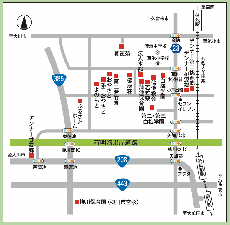 アクセス情報 アクセス情報 西鉄天神大牟田線「西鉄柳川駅」から徒歩21分 HOME 柳川保育園についてアクセス施設長あいさつ入園を希望の方へ園の特徴病後児保育専門職員と協力機関1日の流れ英語教育年間の行事絵の教室学正会で働く人の声体育あそび教室マイナビ採用ページ伝統文化にふれる(日舞)保育園自己評価結果ICTを活用した学び重要事項説明書SDGsの創作活動学正会YouTube育ちを支える「食事」社会福祉法人学正会