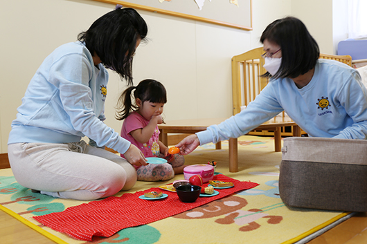病気の回復期にあり、集団生活ができない状況で保護者の方が仕事などの都合で家庭で保育ができないお子様を専用保育室でお預かりしています。