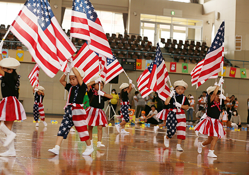 音楽に合わせてダンスする。集団行動をしてみんなで表現を楽しむなど、体育を通して様々な感覚や協調性も身につけてゆきます